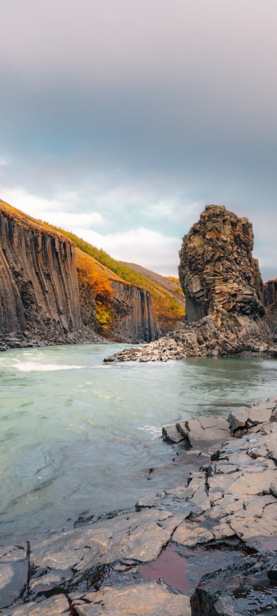 Обои: Исландия, река, пейзаж - 1080x2400