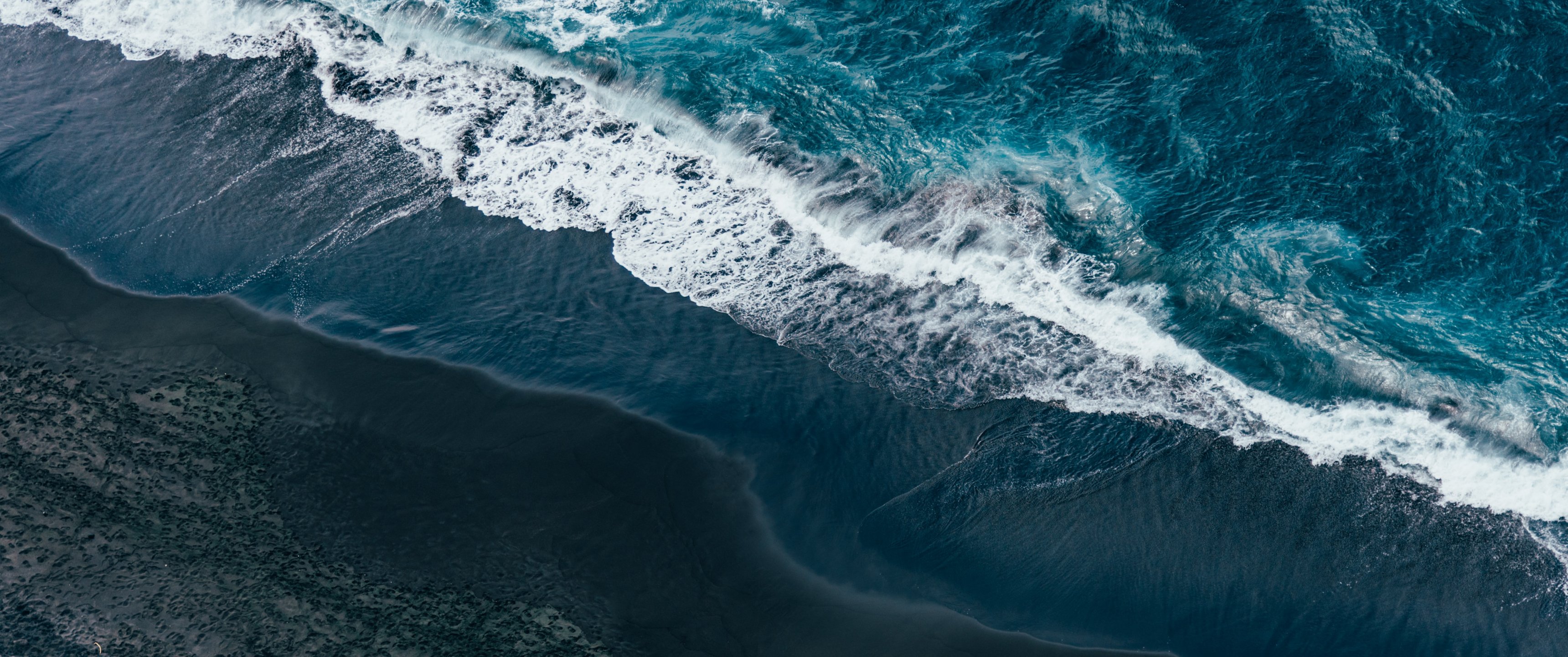 Обои: море, вид с высоты птичьего полета, берег - 3440x1440