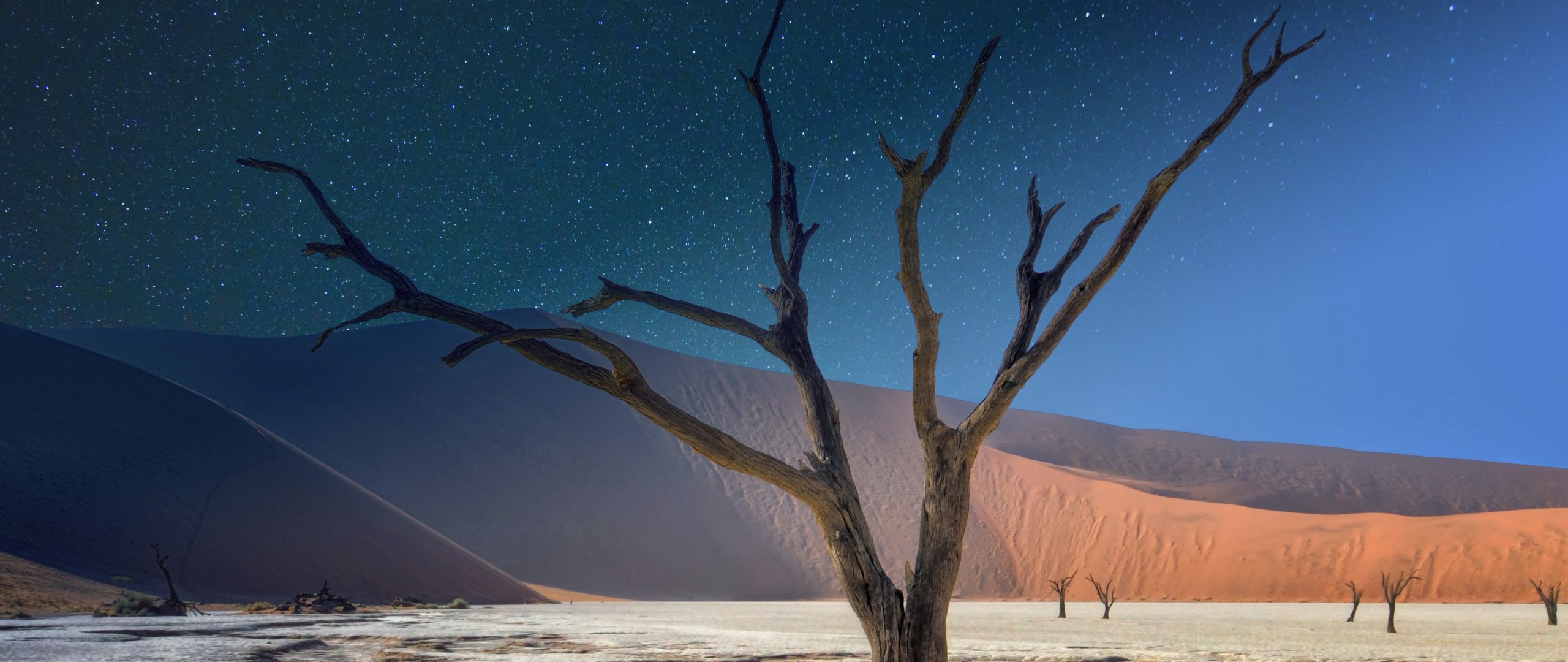 Обои: звездное небо, ночь, дерево - 2560x1080