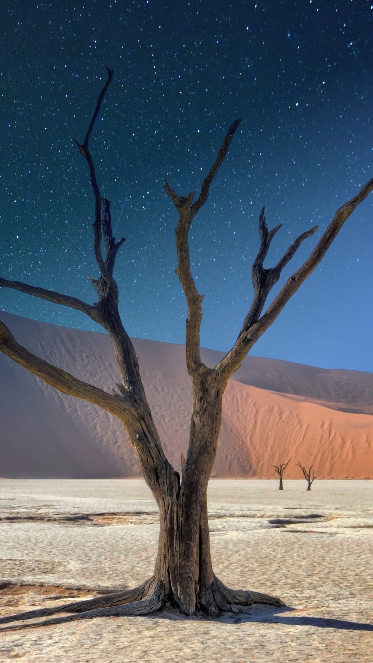 Обои: звездное небо, ночь, дерево - 750x1334