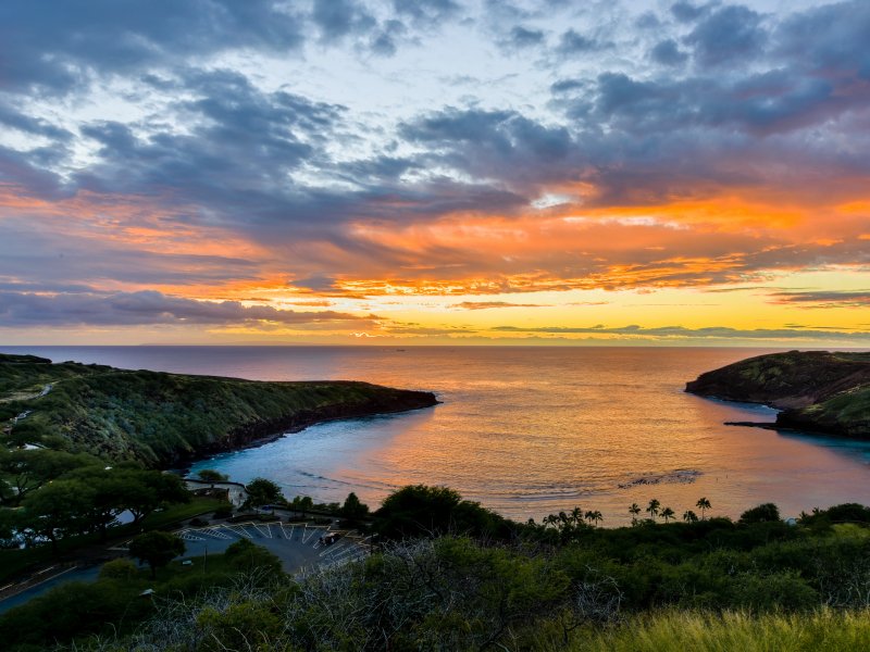 Обои: Ханаума Бэй, залив, закат - 800x600