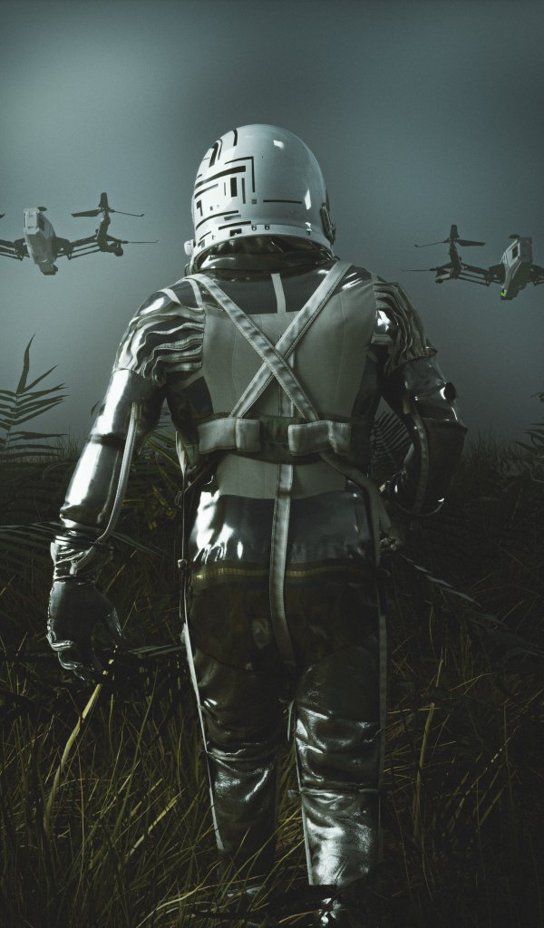Обои: космонавт, скафандр, серый - 600x1024