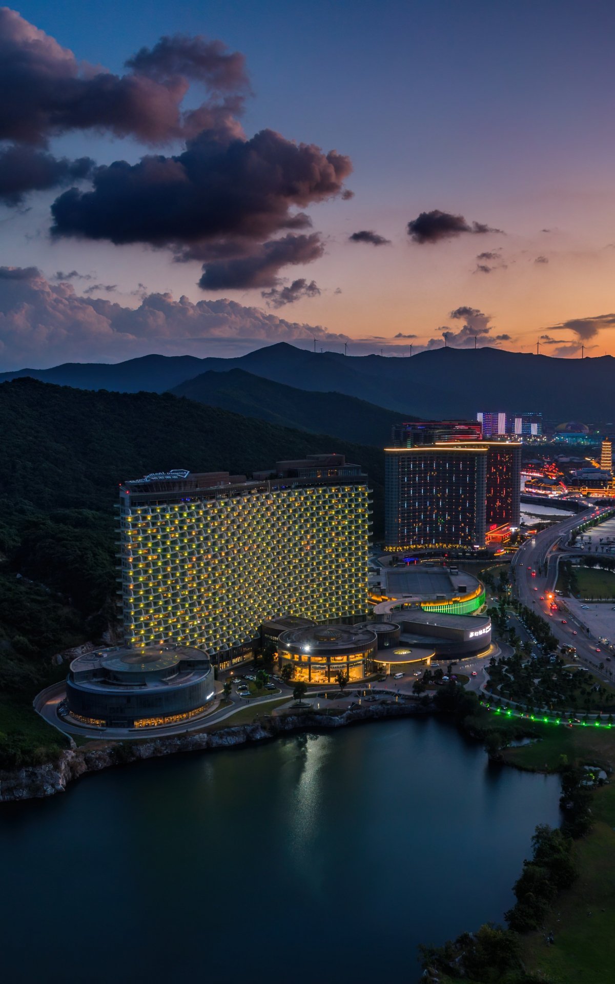 Обои: вид с высоты птичьего полета, отель, закат - 1200x1920