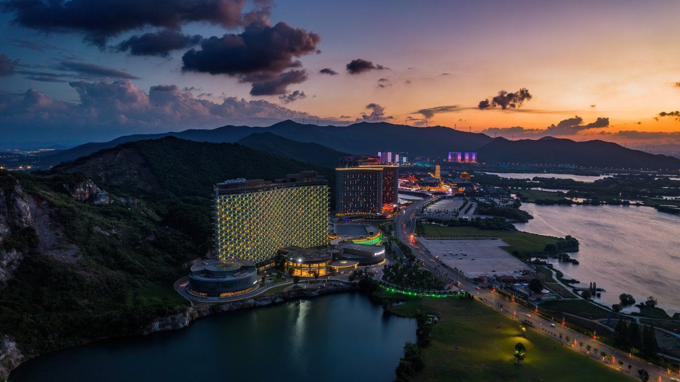 Обои: вид с высоты птичьего полета, отель, закат - 1366x768