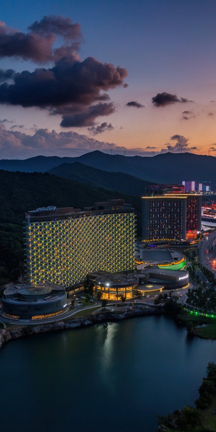 Обои: вид с высоты птичьего полета, отель, закат - 720x1440