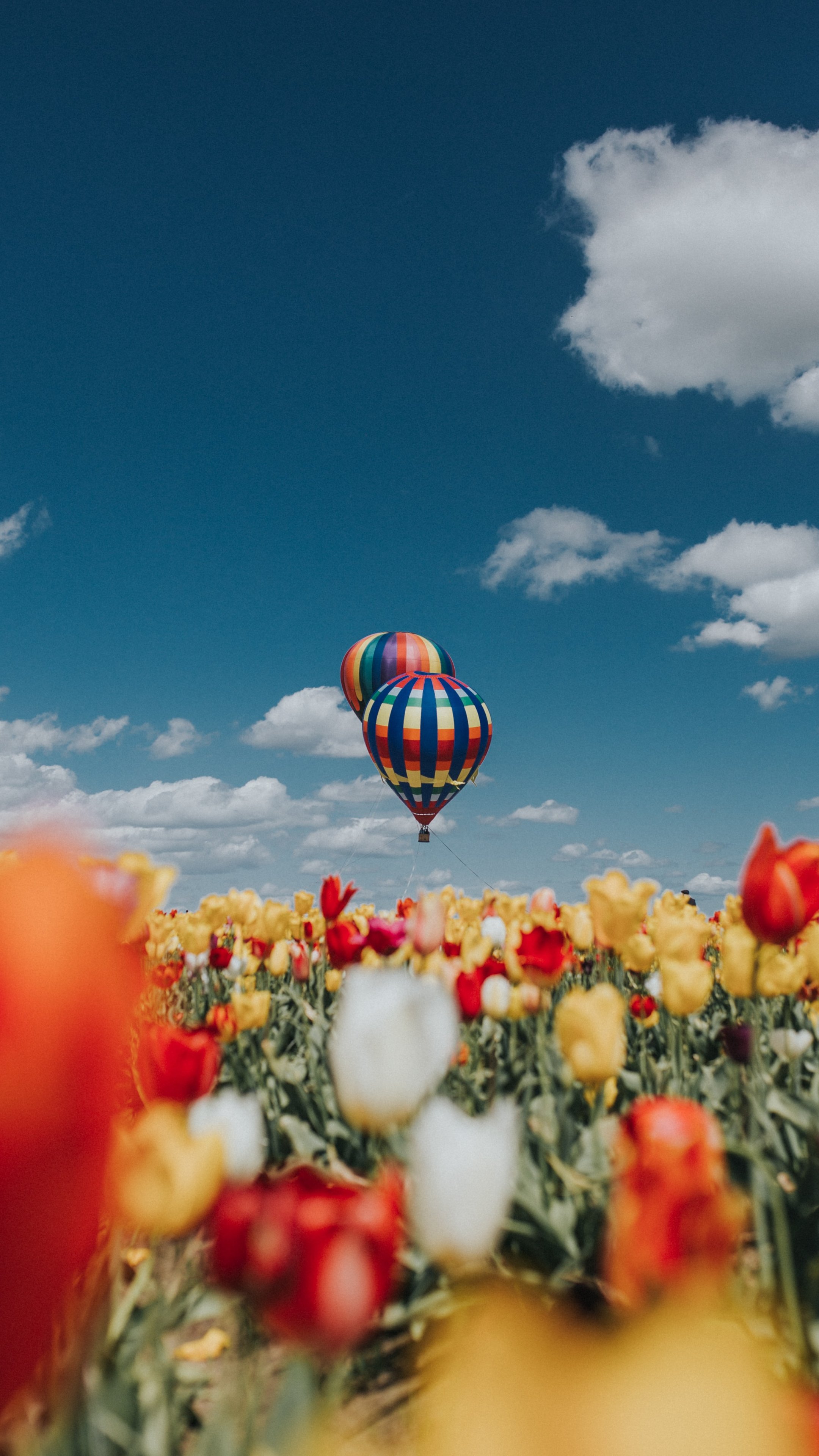 Обои: воздушный шар, тюльпаны, голубое небо - 2160x3840
