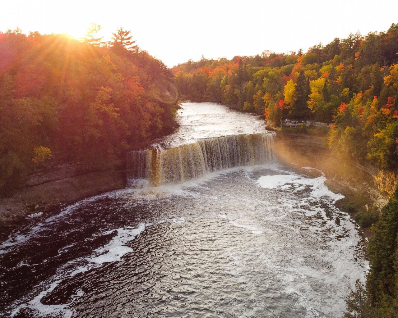 Обои: водопад, солнечный свет, вид с высоты птичьего полета - 1280x1024