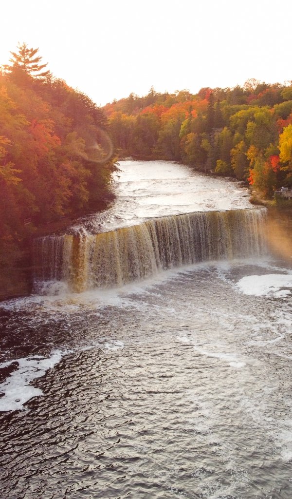 Обои: водопад, солнечный свет, вид с высоты птичьего полета - 600x1024