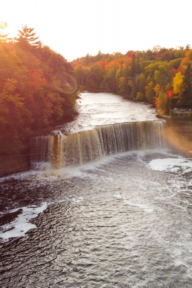 Обои: водопад, солнечный свет, вид с высоты птичьего полета - 640x960