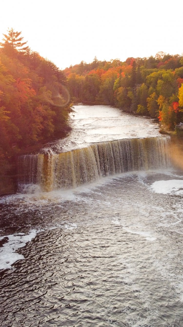 Обои: водопад, солнечный свет, вид с высоты птичьего полета - 750x1334