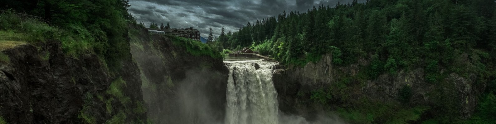 Обои: Водопад Сноквалми, ночь, пейзаж - 1590x400