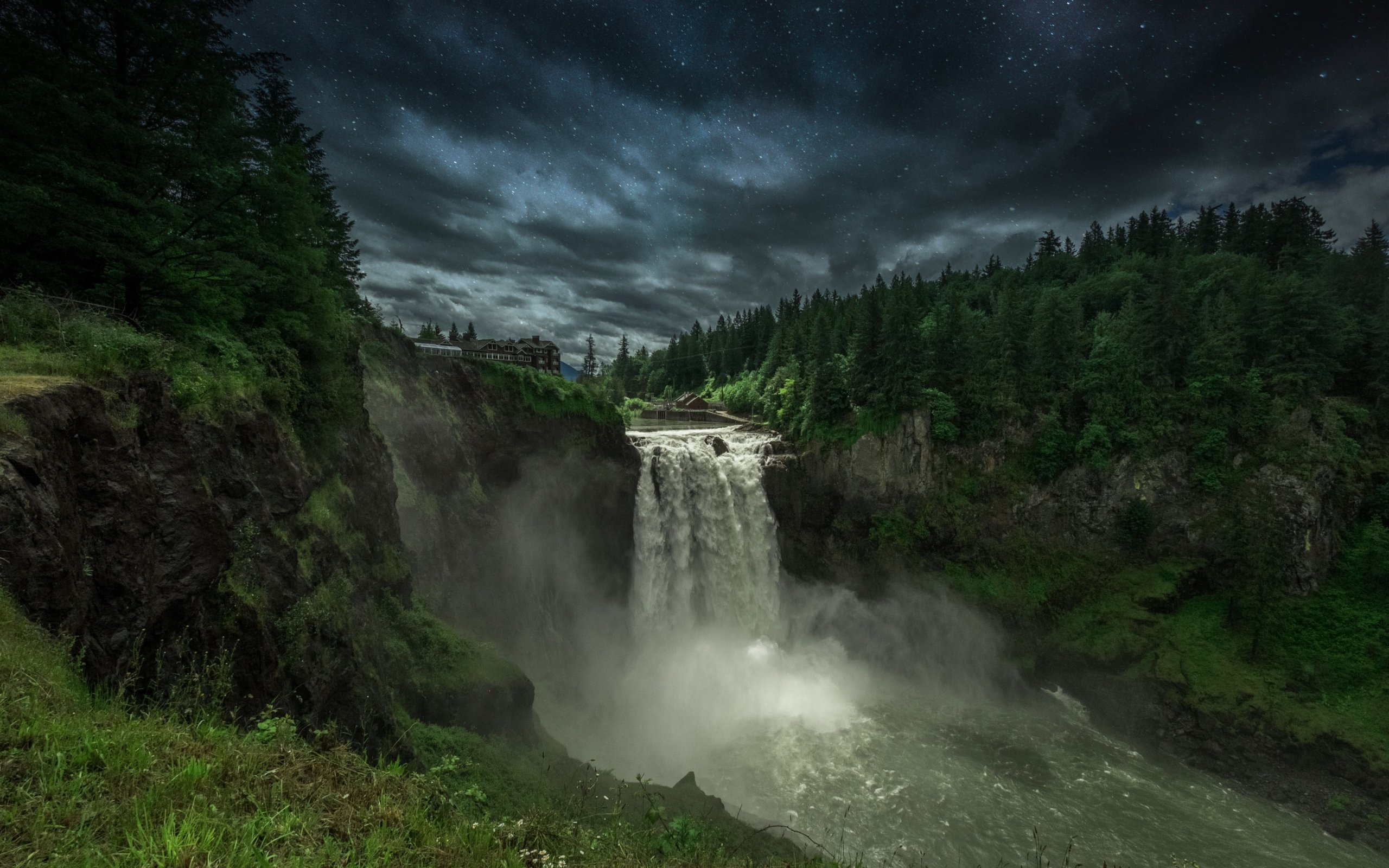 Обои: Водопад Сноквалми, ночь, пейзаж - 2560x1600