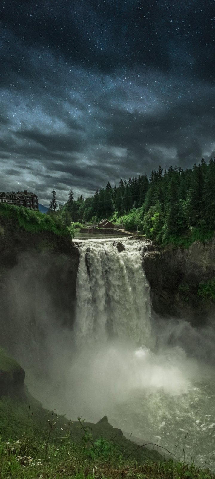 Обои: Водопад Сноквалми, ночь, пейзаж - 720x1600