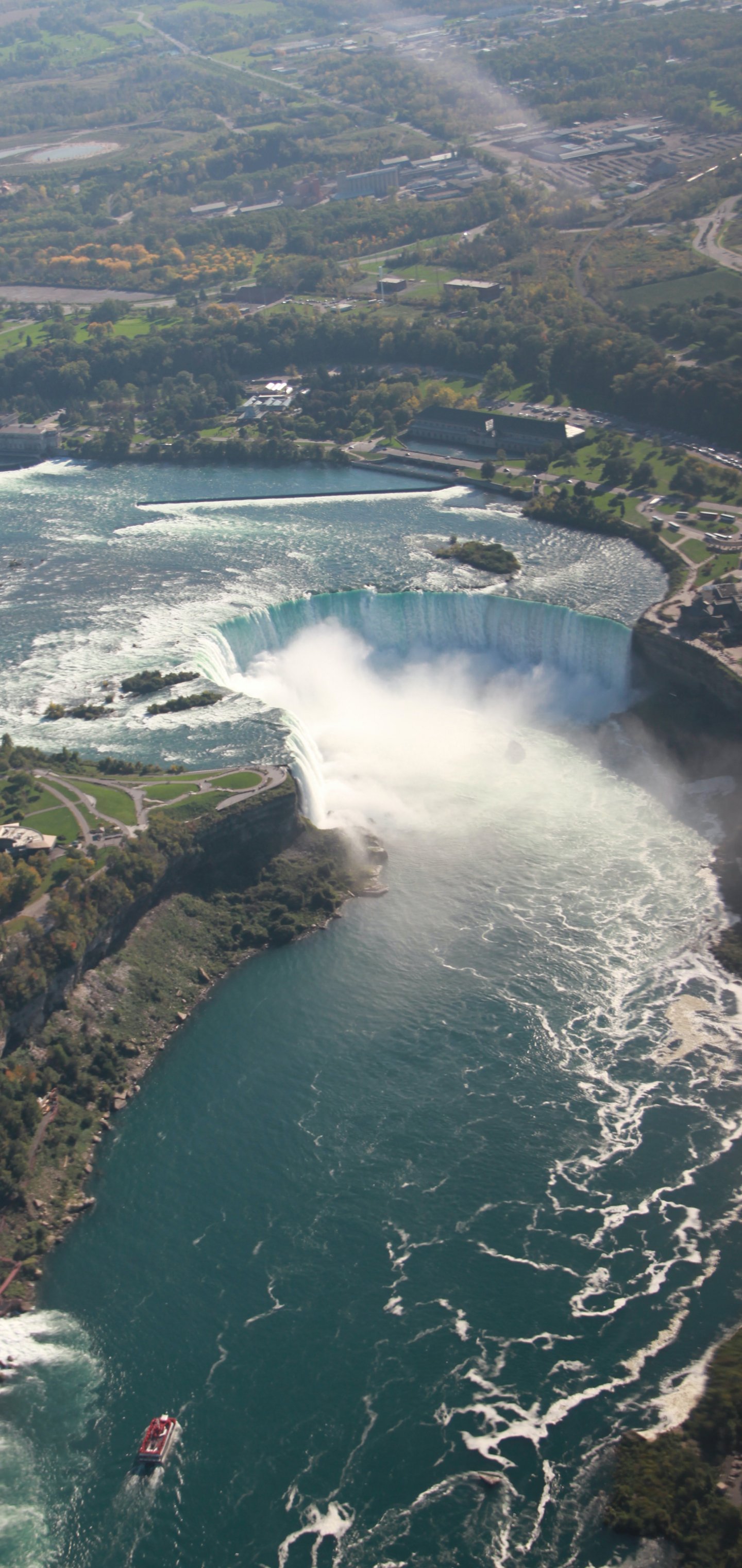 Обои: вид с высоты птичьего полета, водопад, река - 1440x3040