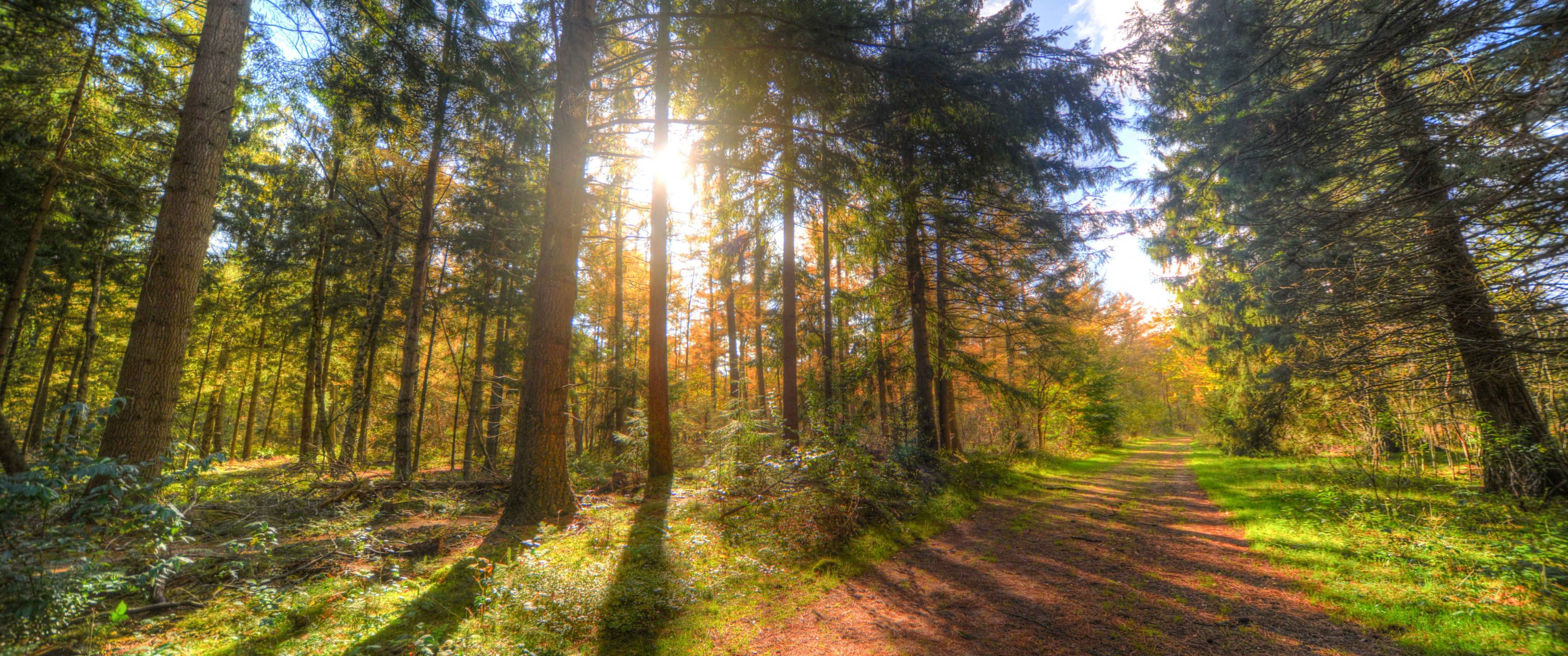 Обои: лет, тропинка, солнечный свет - 3440x1440