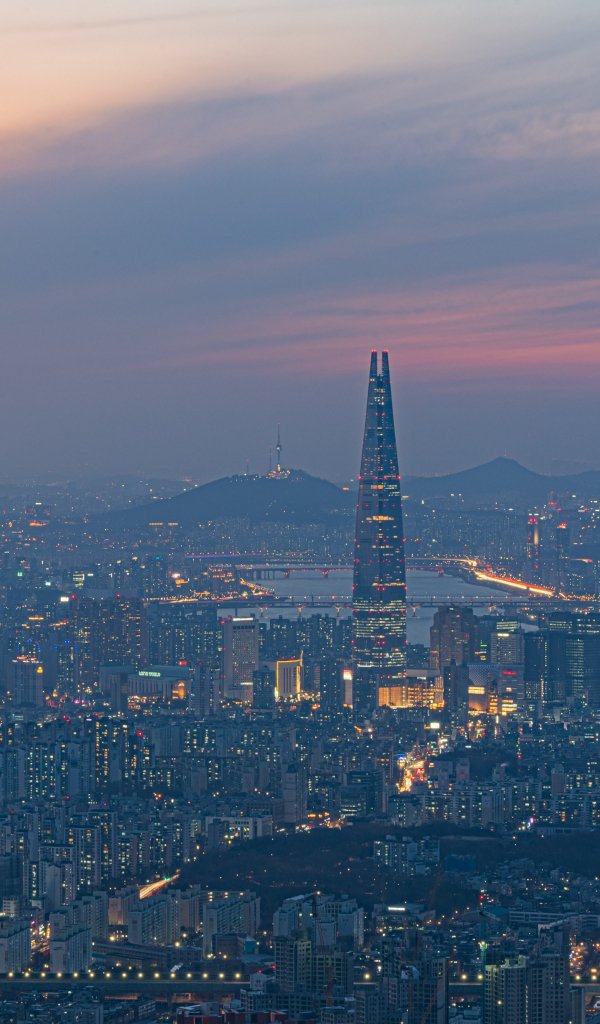 Обои: Сеул, Южная Корея, вид с высоты птичьего полета - 600x1024