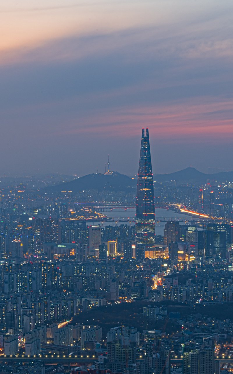 Обои: Сеул, Южная Корея, вид с высоты птичьего полета - 800x1280