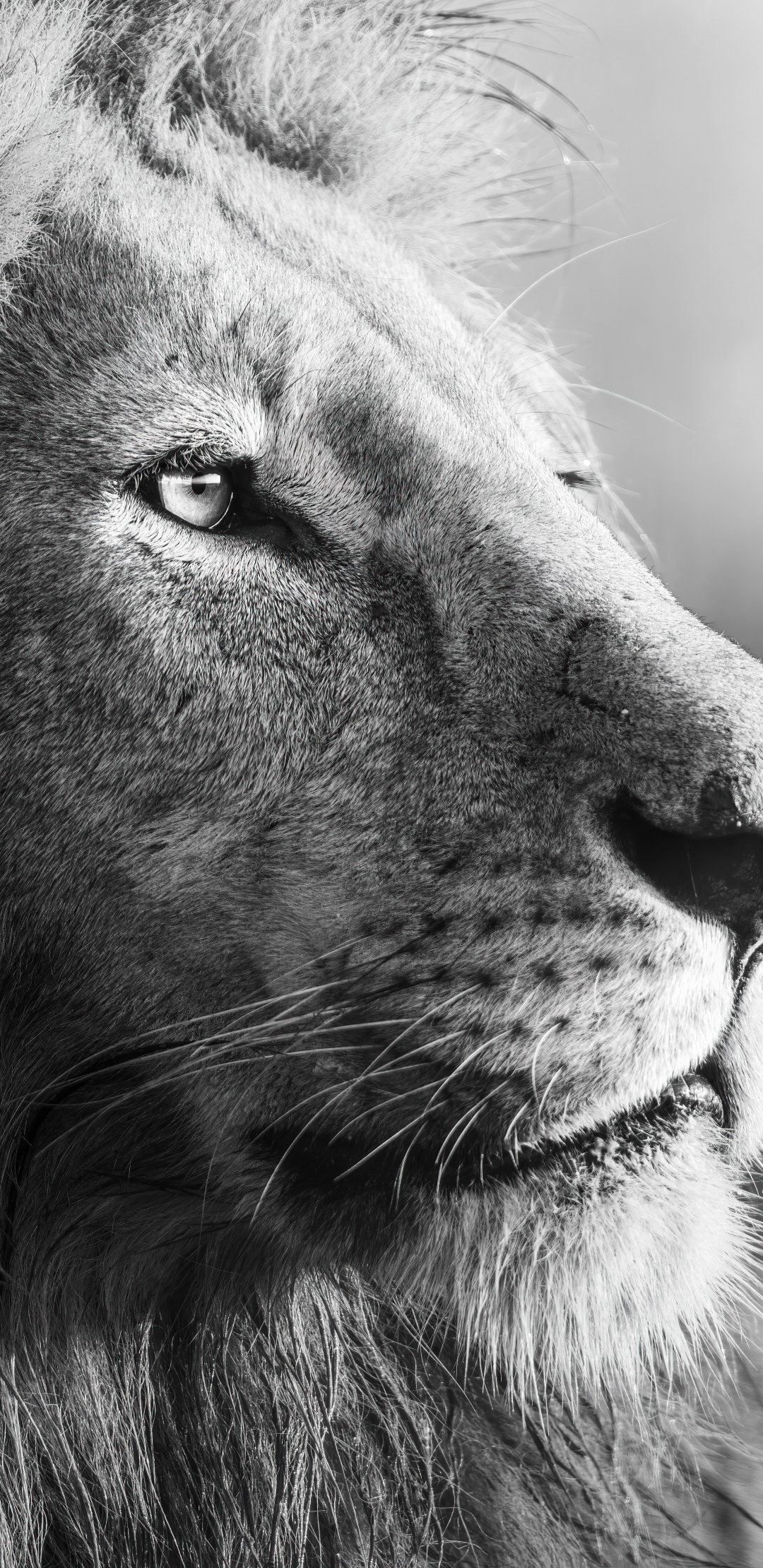 Обои: лев, хищник, черное и белое - 1080x2220