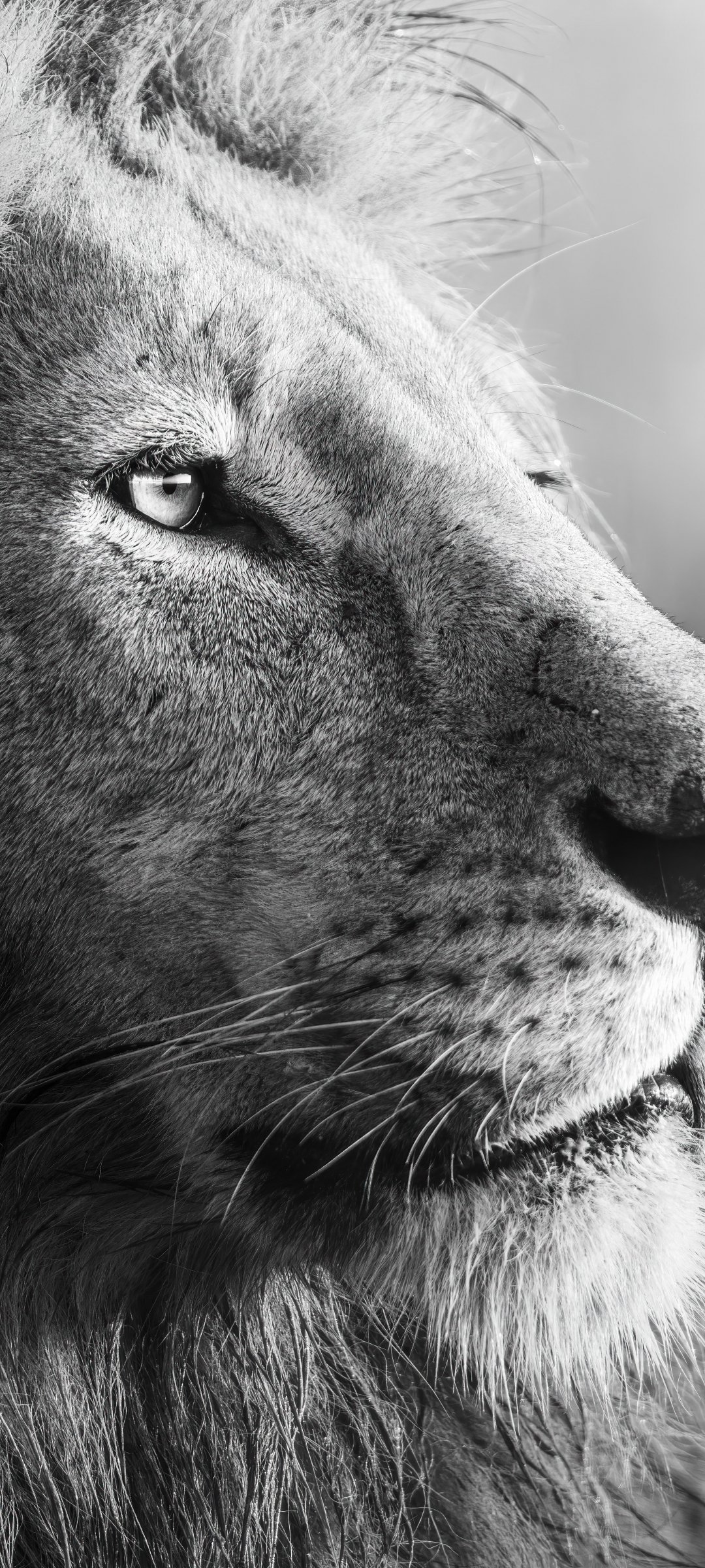Обои: лев, хищник, черное и белое - 1080x2400