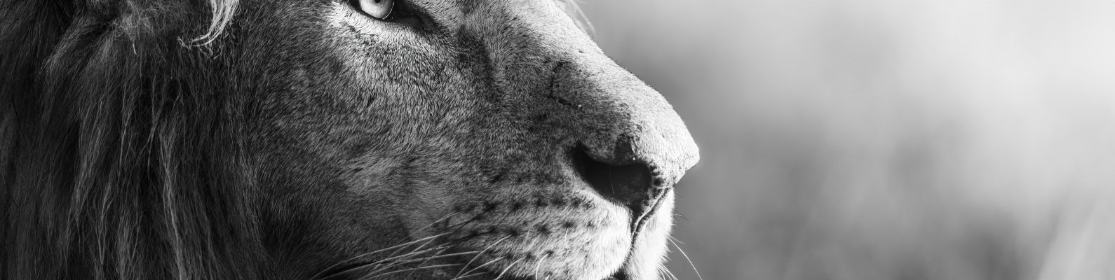 Обои: лев, хищник, черное и белое - 1590x400