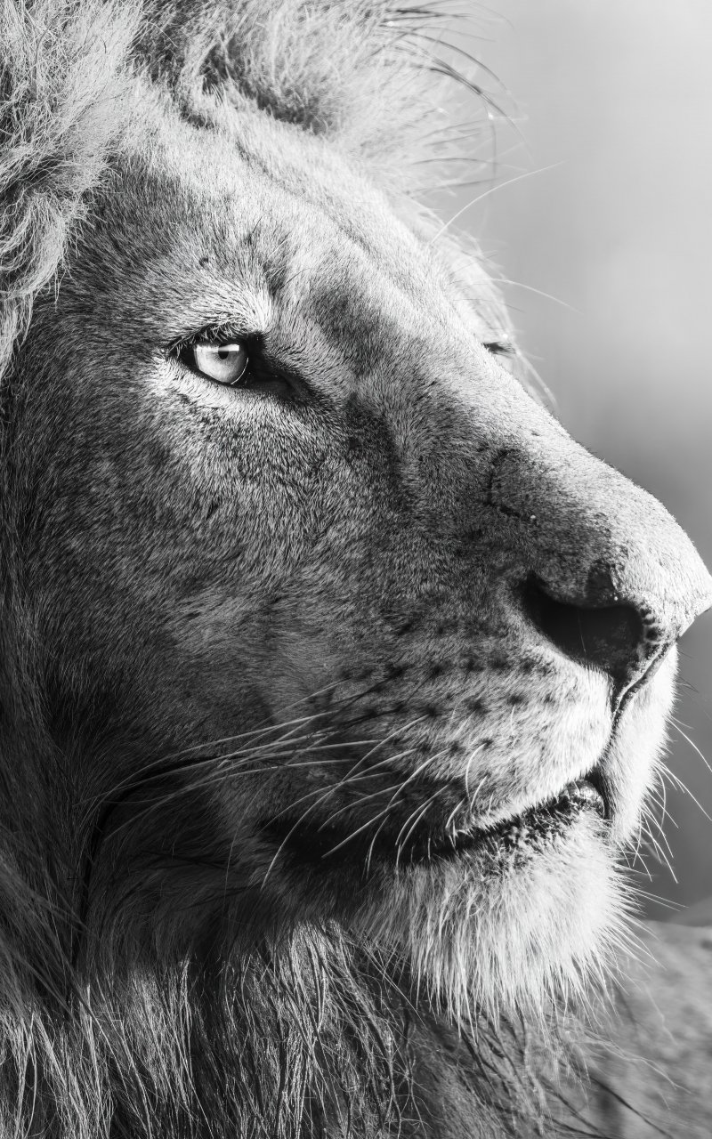 Обои: лев, хищник, черное и белое - 800x1280