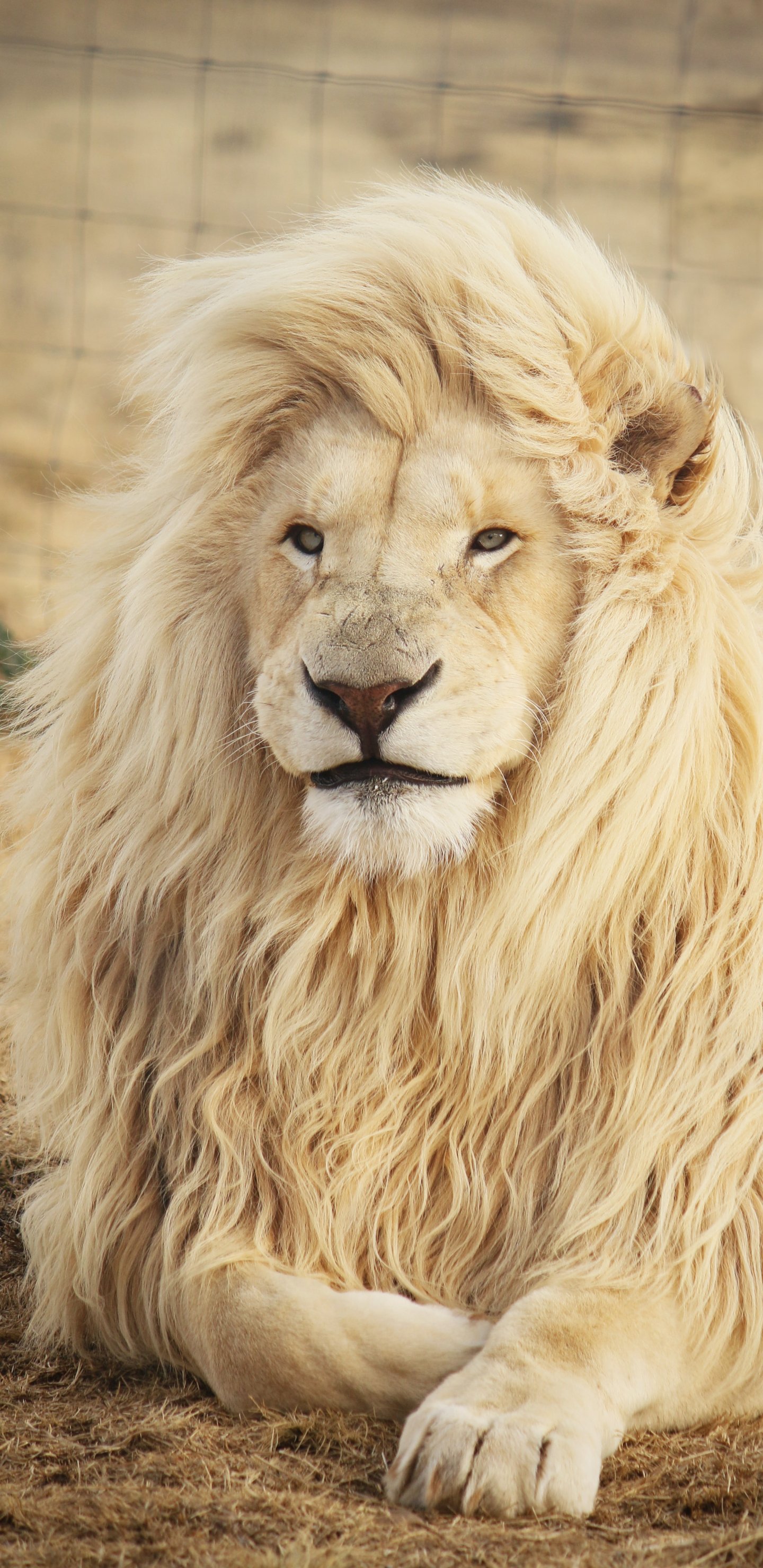 Обои: белый лев, дикая природа, грива - 1440x2960