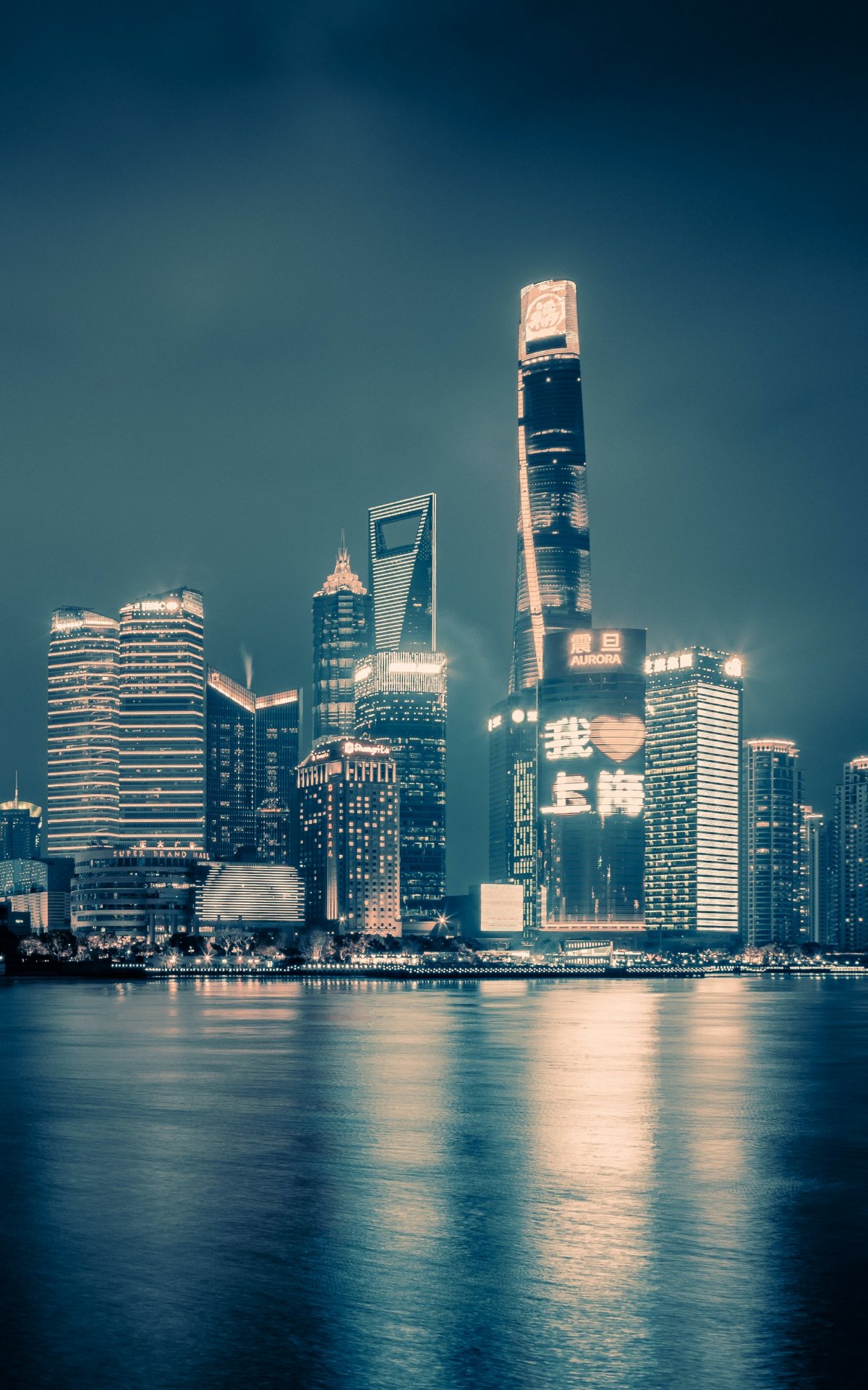 Обои: Шанхай, ночной город, темный - 1200x1920