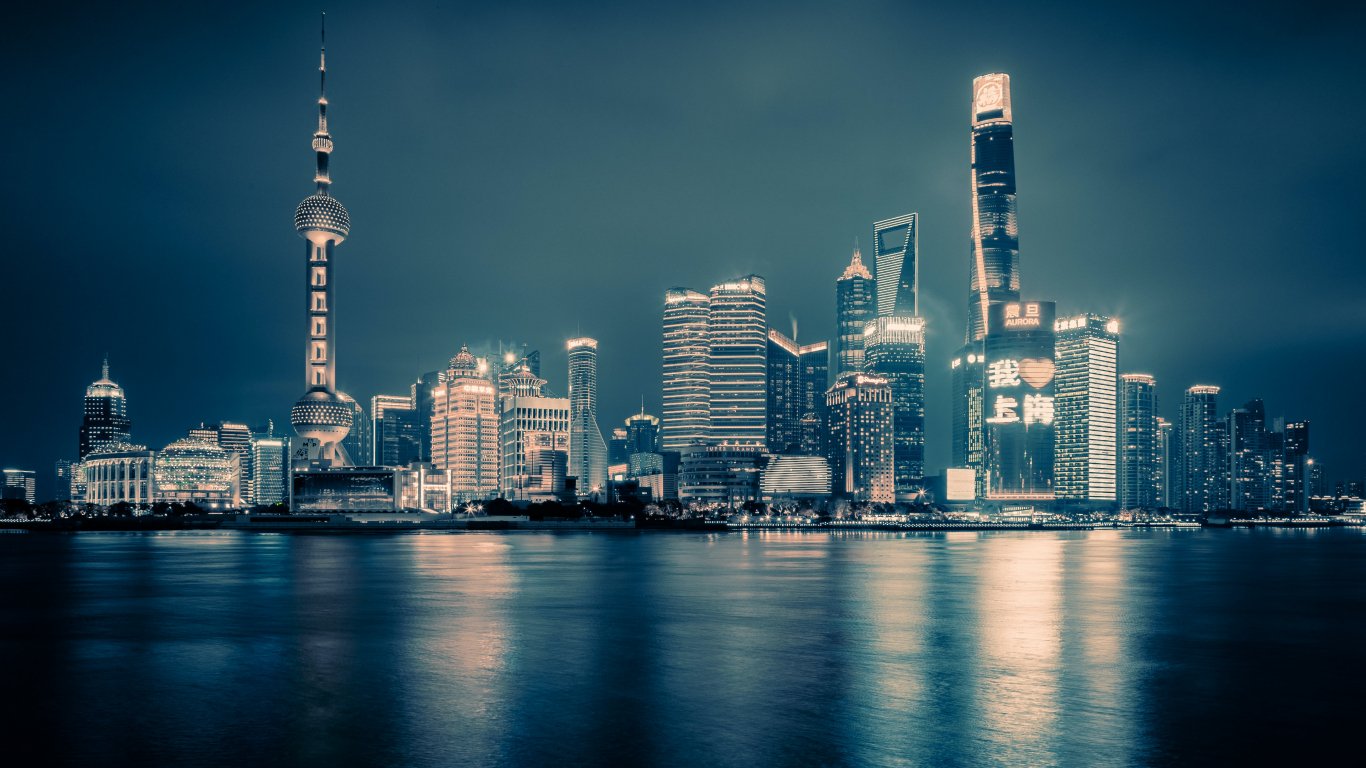 Обои: Шанхай, ночной город, темный - 1366x768
