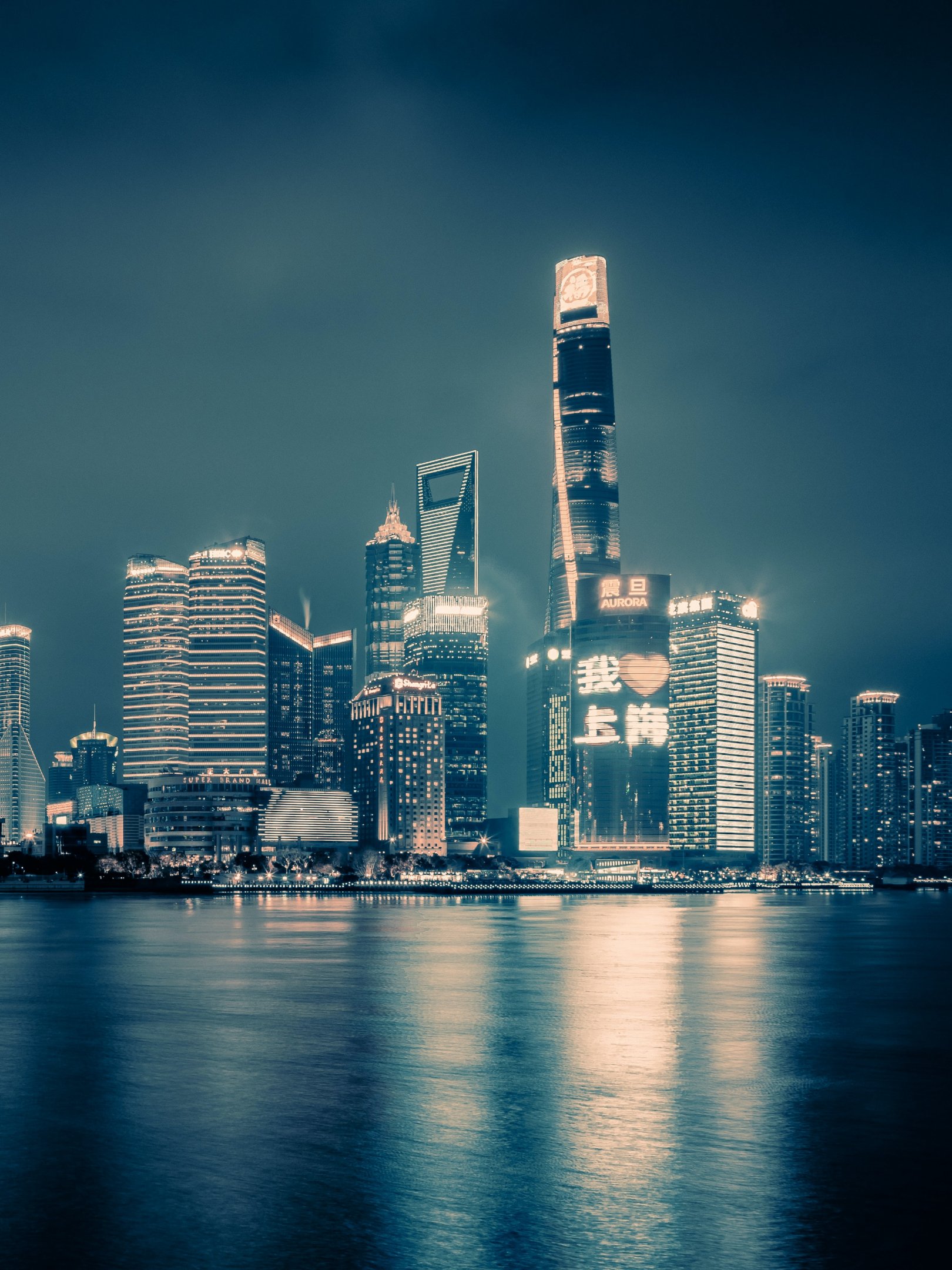 Обои: Шанхай, ночной город, темный - 1620x2160