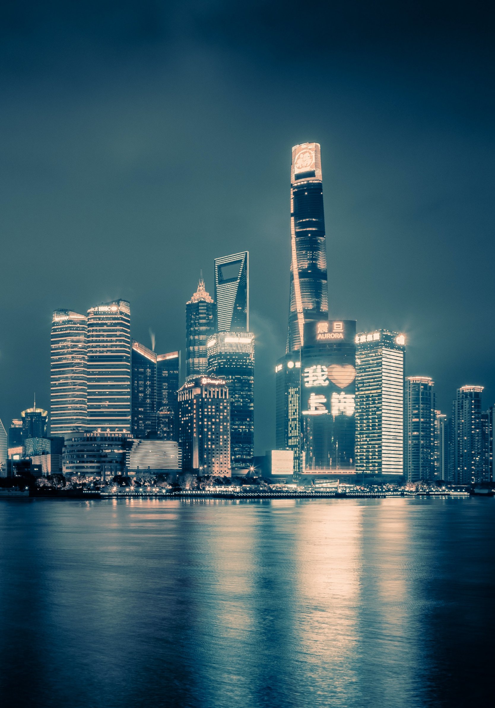 Обои: Шанхай, ночной город, темный - 1668x2388