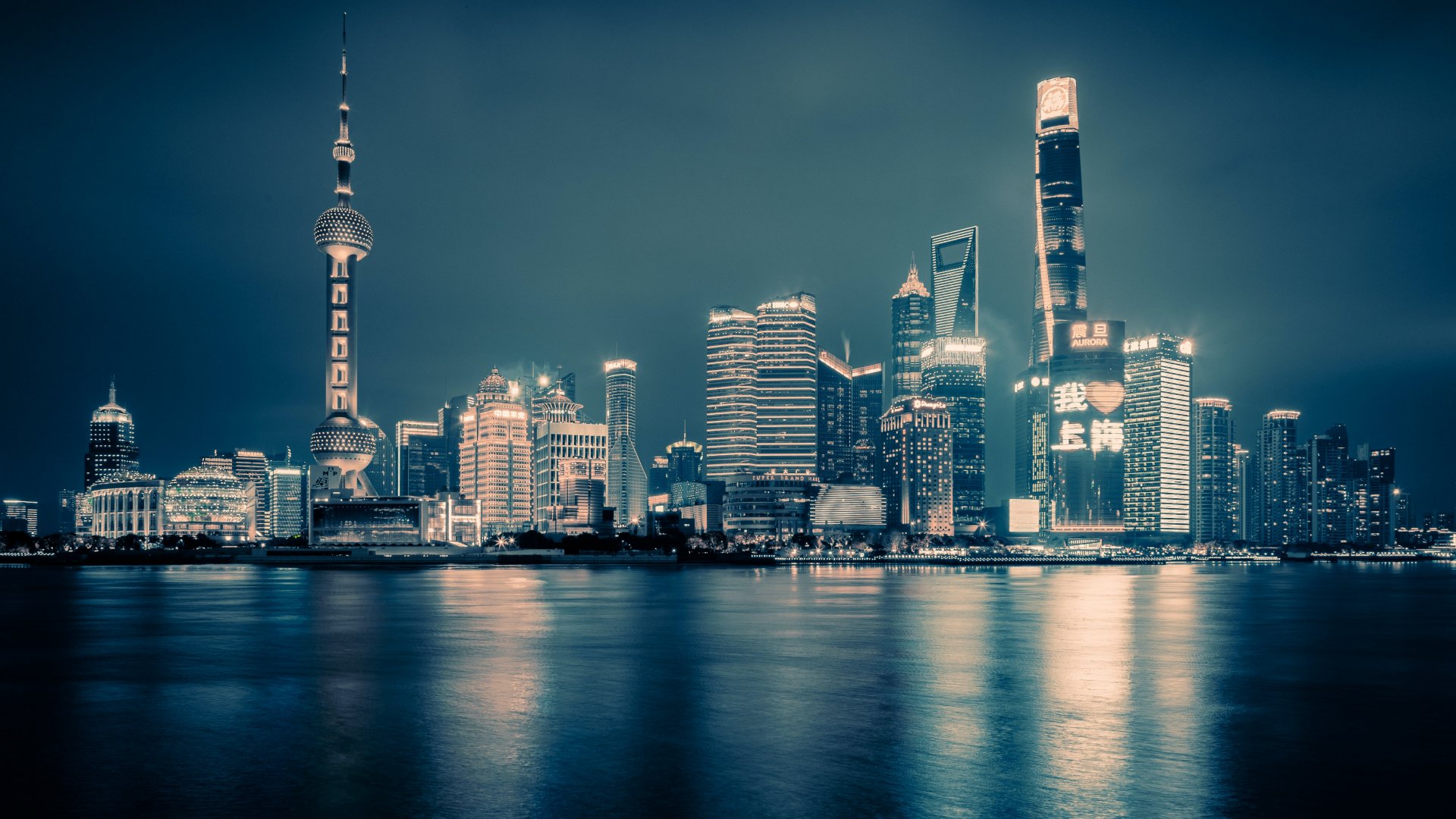 Обои: Шанхай, ночной город, темный - 1920x1080
