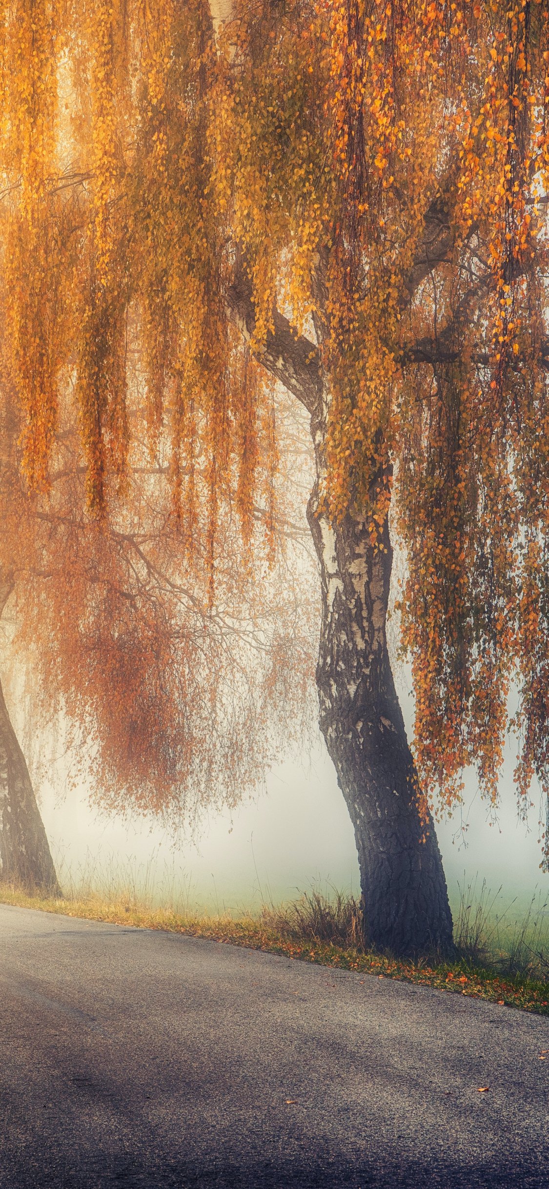 Обои: осень, дорога, солнечный свет - 1125x2436