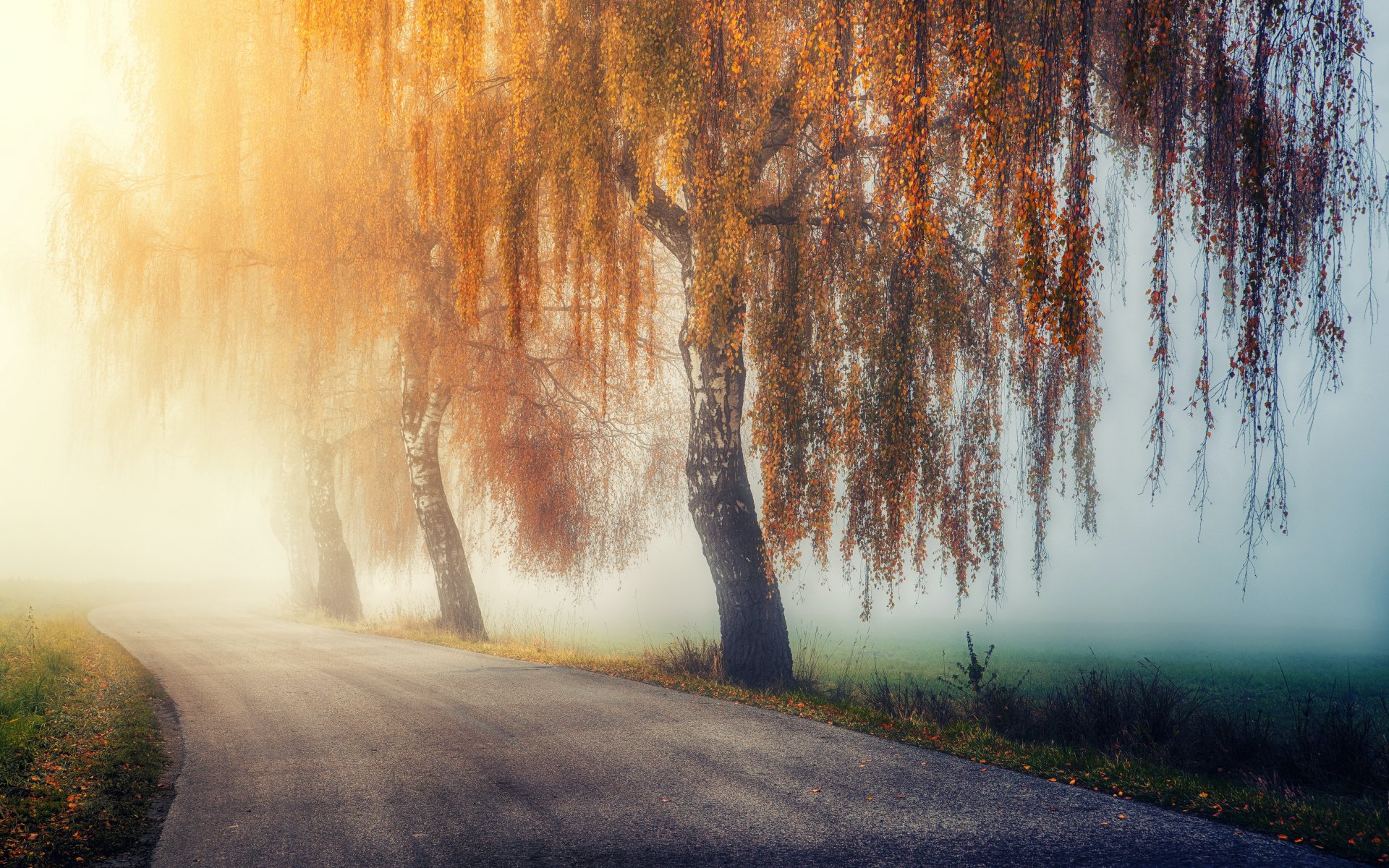 Обои: осень, дорога, солнечный свет - 1920x1200