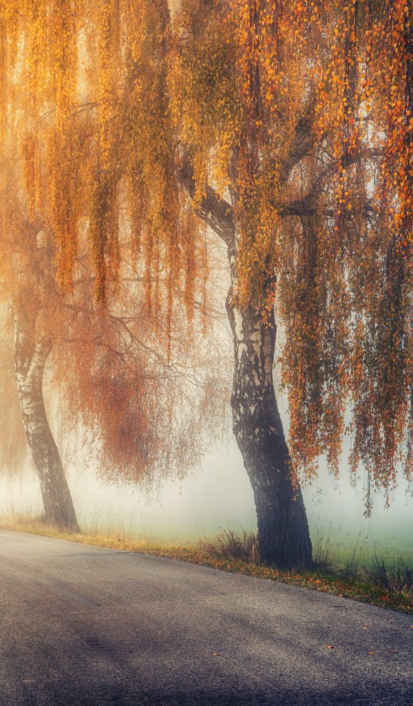 Обои: осень, дорога, солнечный свет - 600x1024