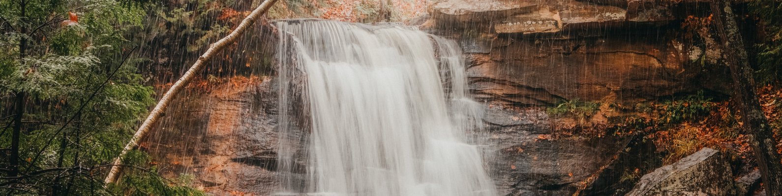 Обои: водопад, дождь, пейзаж - 1590x400