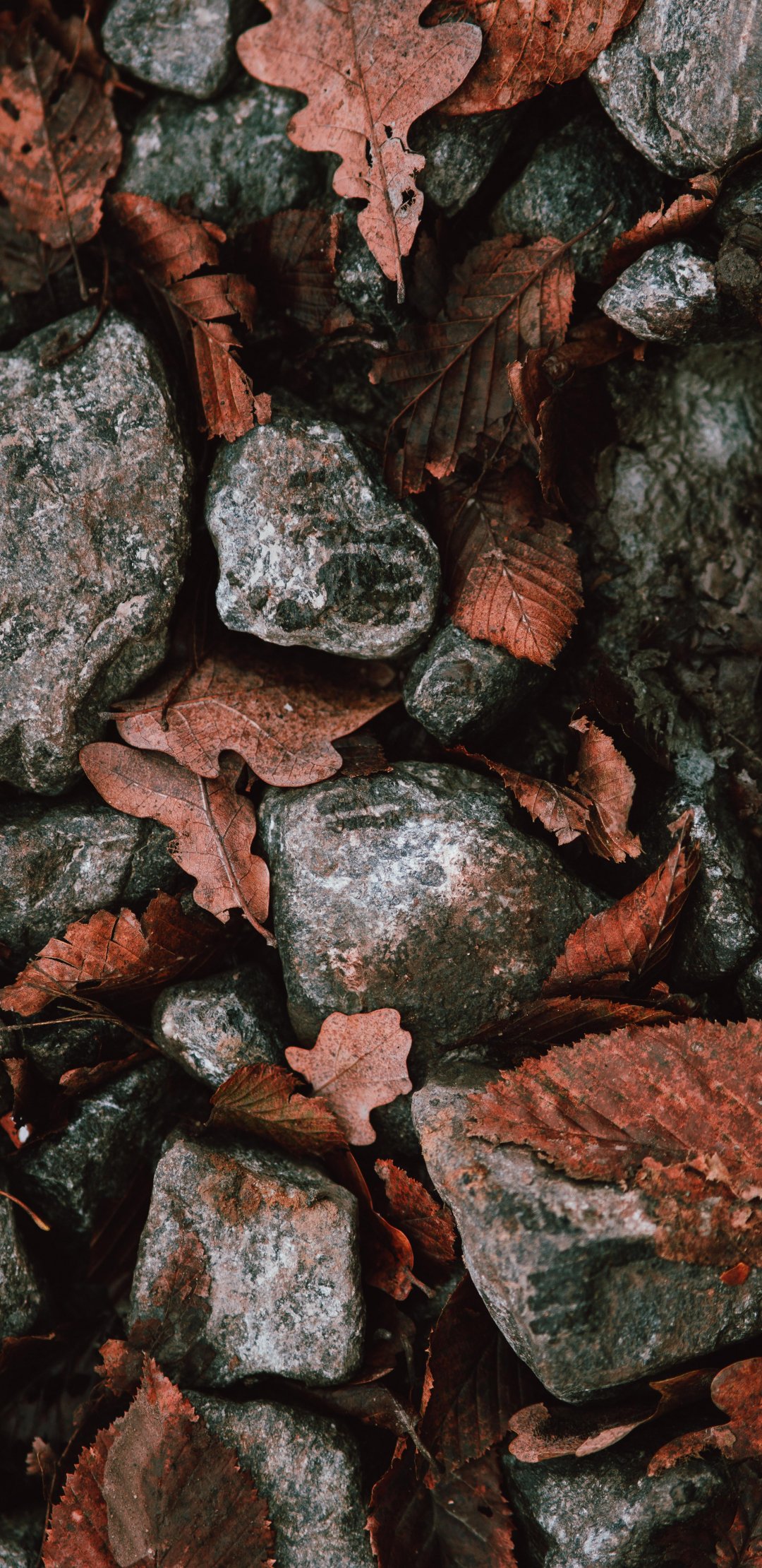 Обои: осенние листья, камни - 1080x2220