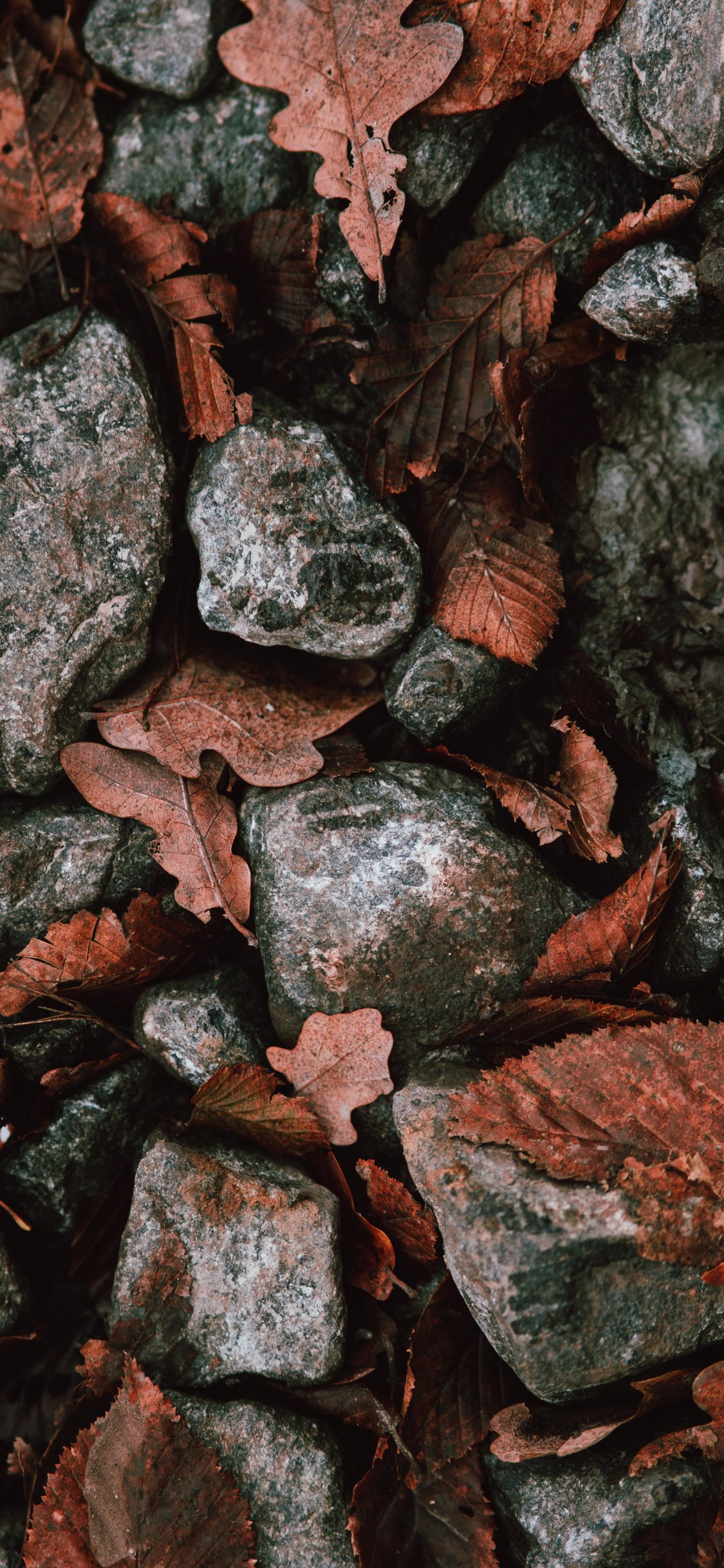 Обои: осенние листья, камни - 1125x2436