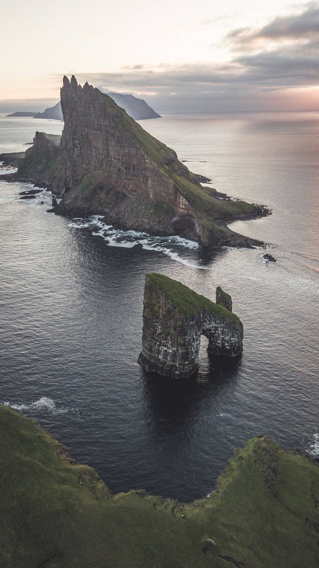 Обои: Фарерские острова, вид с высоты птичьего полета, море - 1080x1920