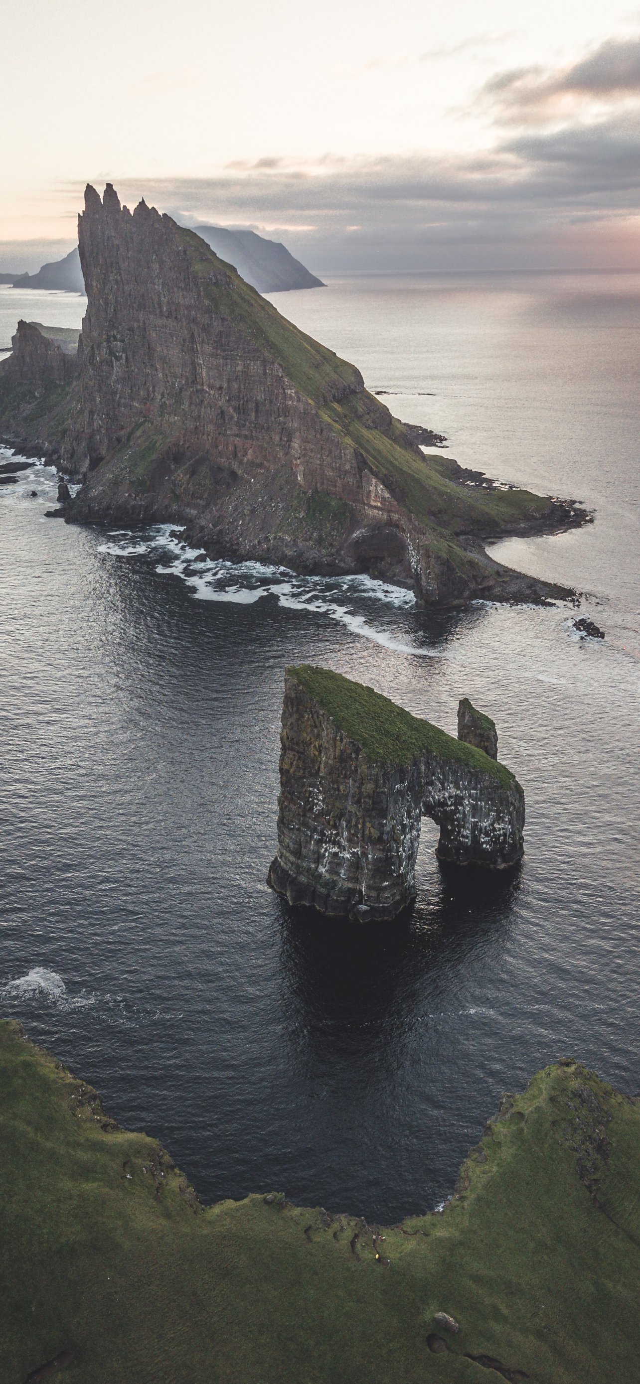 Обои: Фарерские острова, вид с высоты птичьего полета, море - 1284x2778