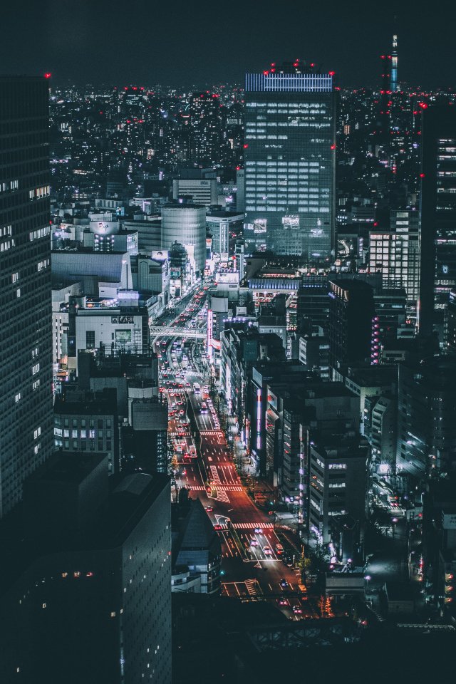 Обои: Токио, Япония, ночной город - 640x960