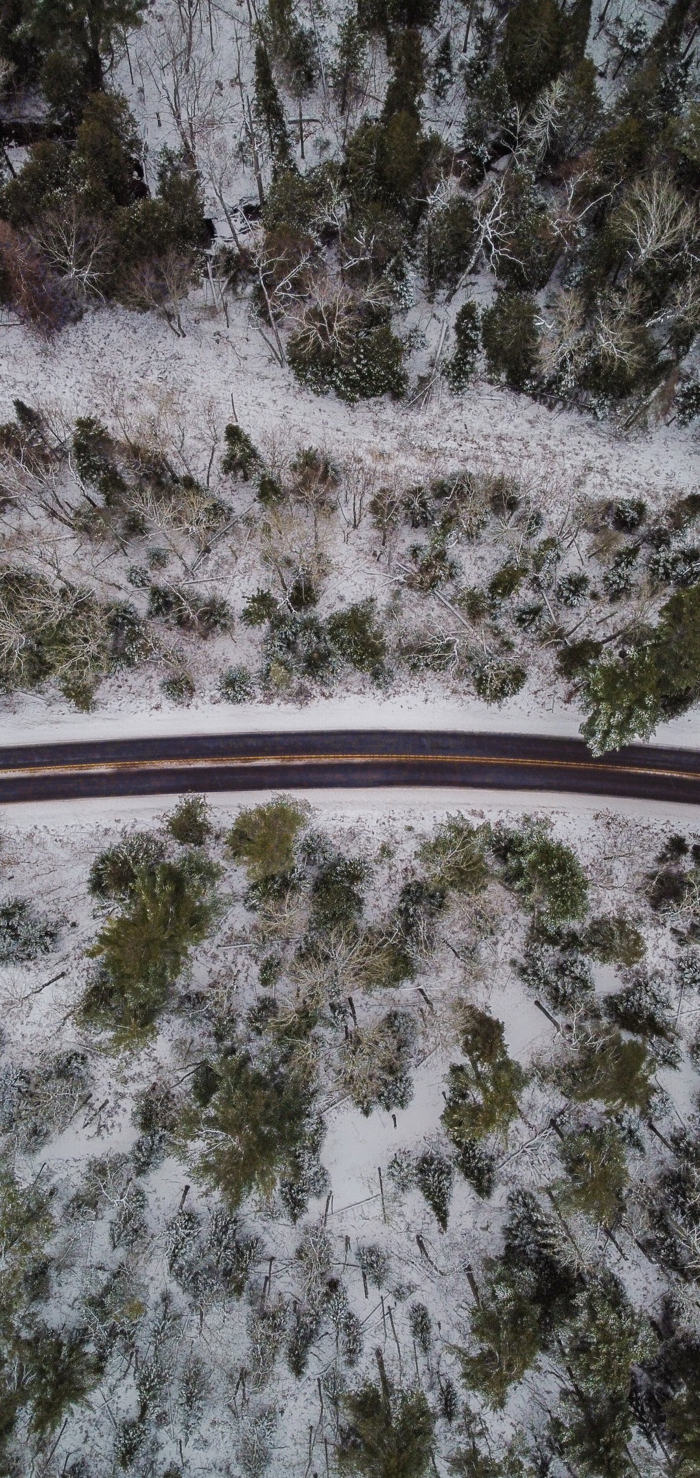Обои: зимняя дорога, вид сверху - 1440x3040