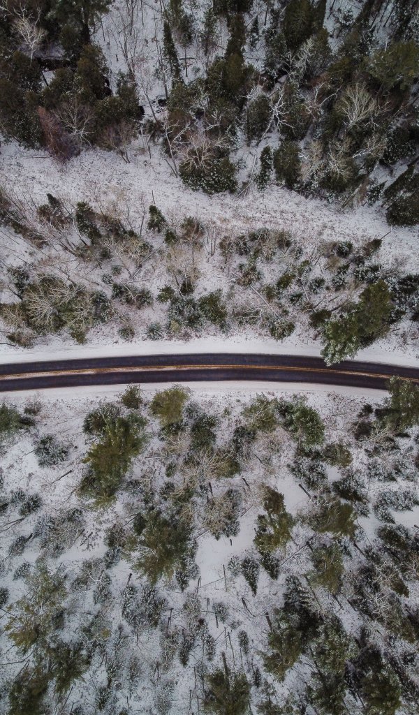 Обои: зимняя дорога, вид сверху - 600x1024