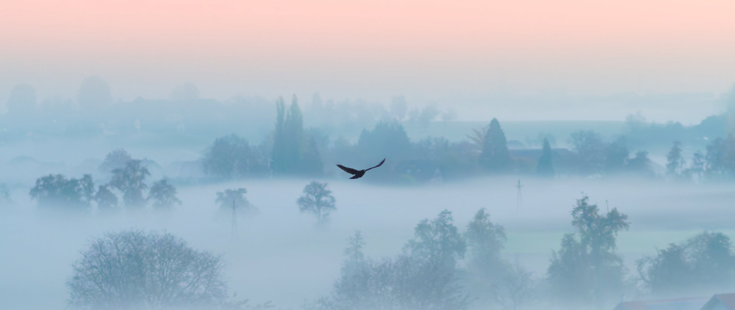 Обои: туман, птица - 2560x1080
