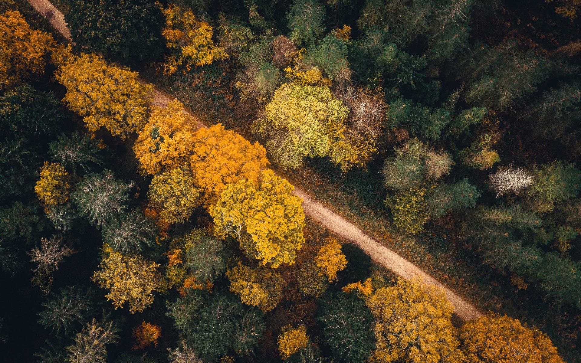 Обои: осенний лес, дорога - 1920x1200