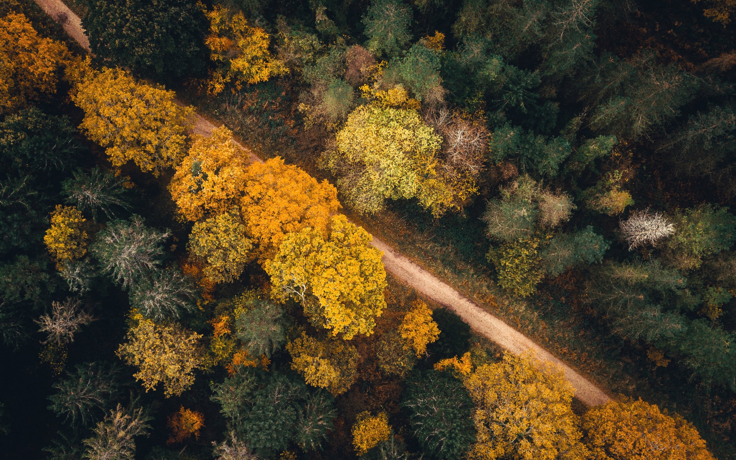 Обои: осенний лес, дорога - 2560x1600
