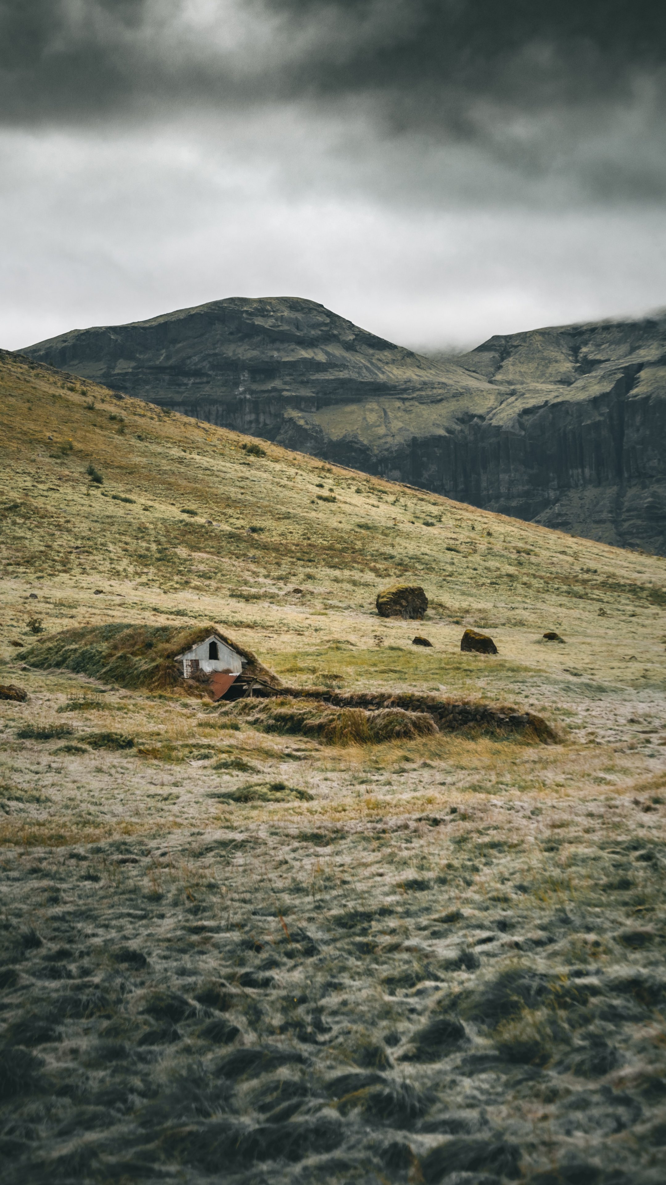 Обои: Горы, домик на склоне - 2160x3840