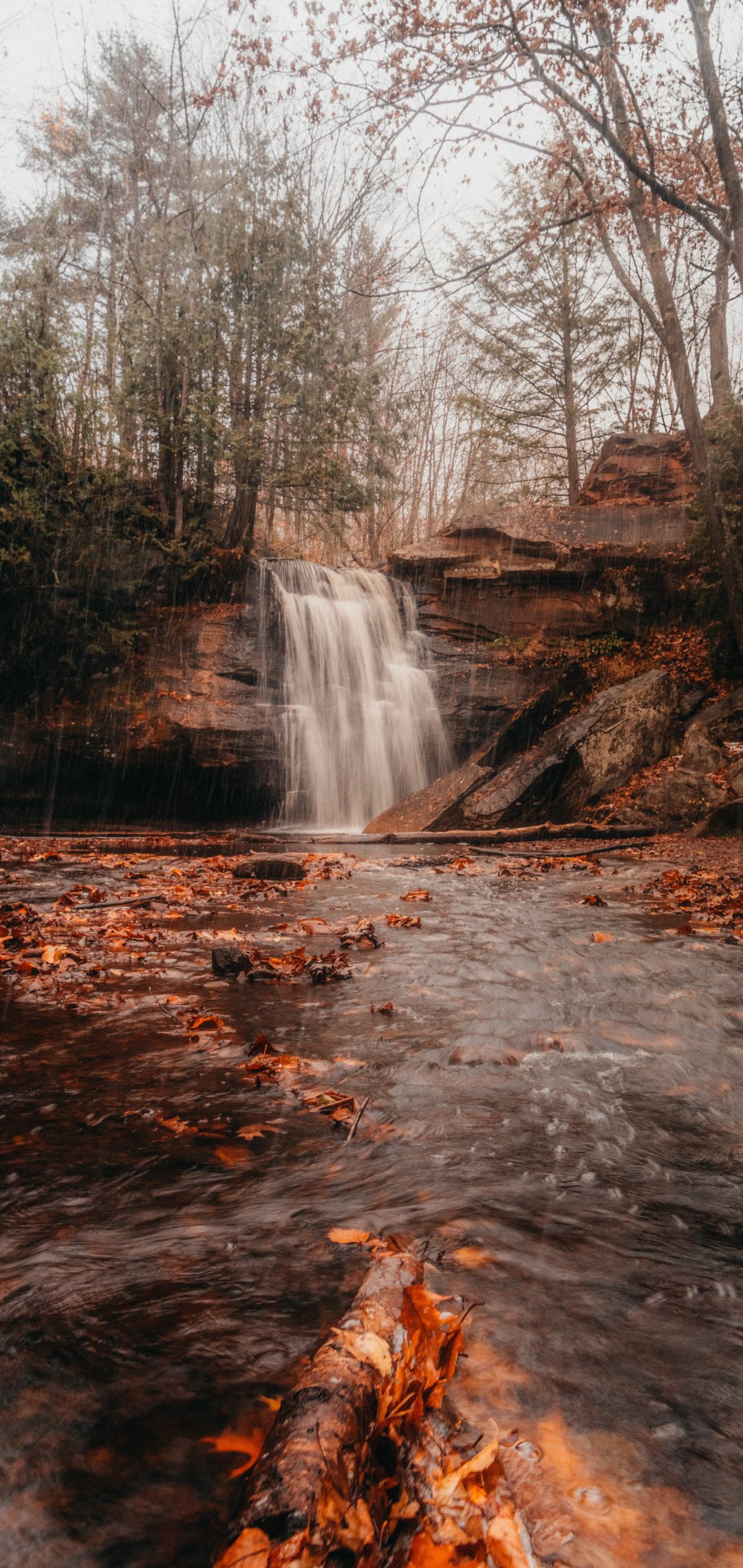 Обои: водопад, осень - 1080x2280