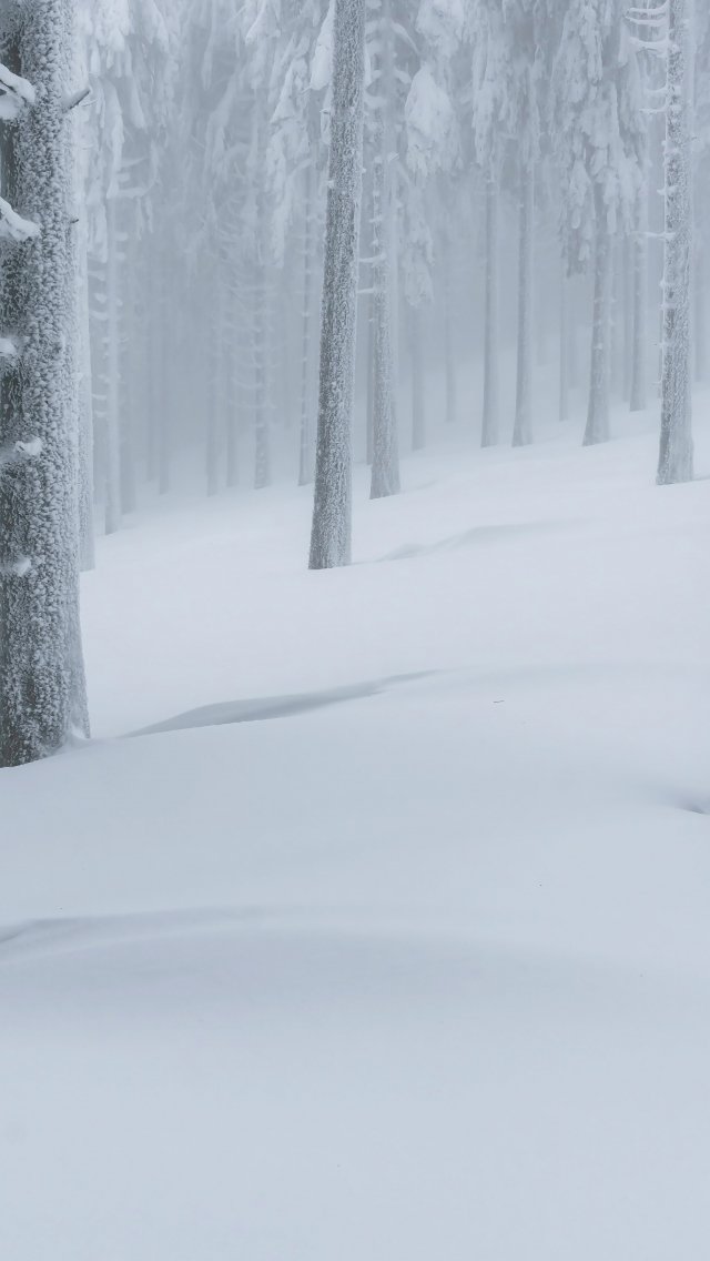 Обои: снежный лес, зимний лес - 640x1136
