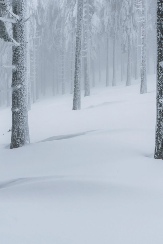 Обои: снежный лес, зимний лес - 640x960