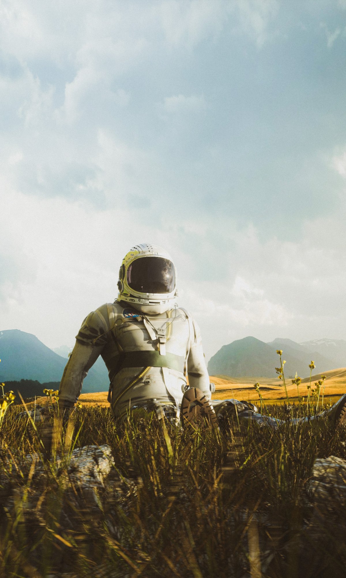 Обои: космонавт, поле - 1200x2000